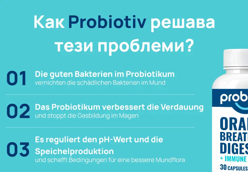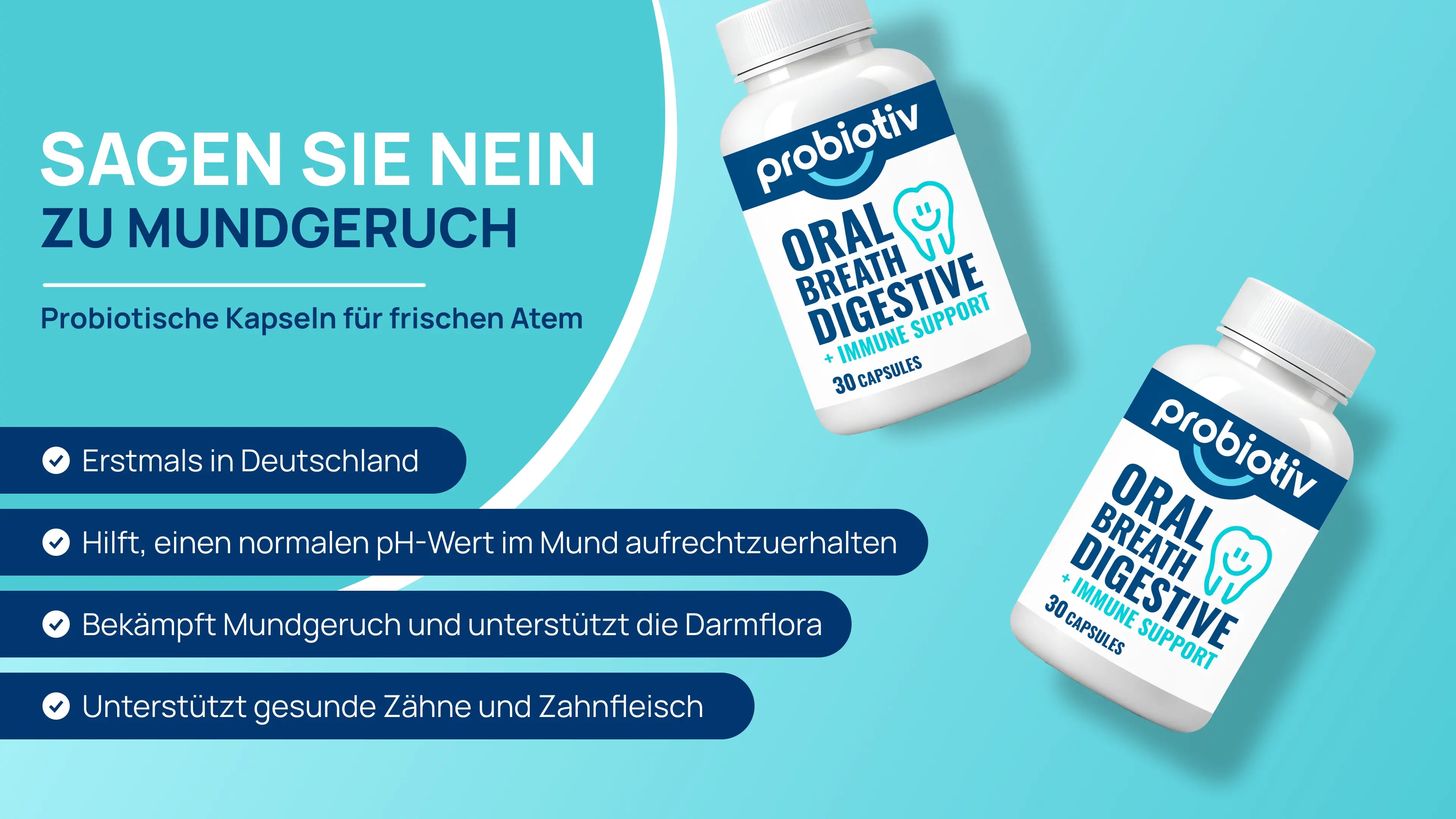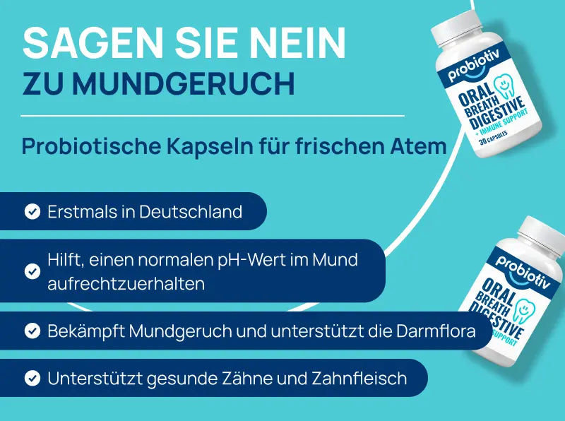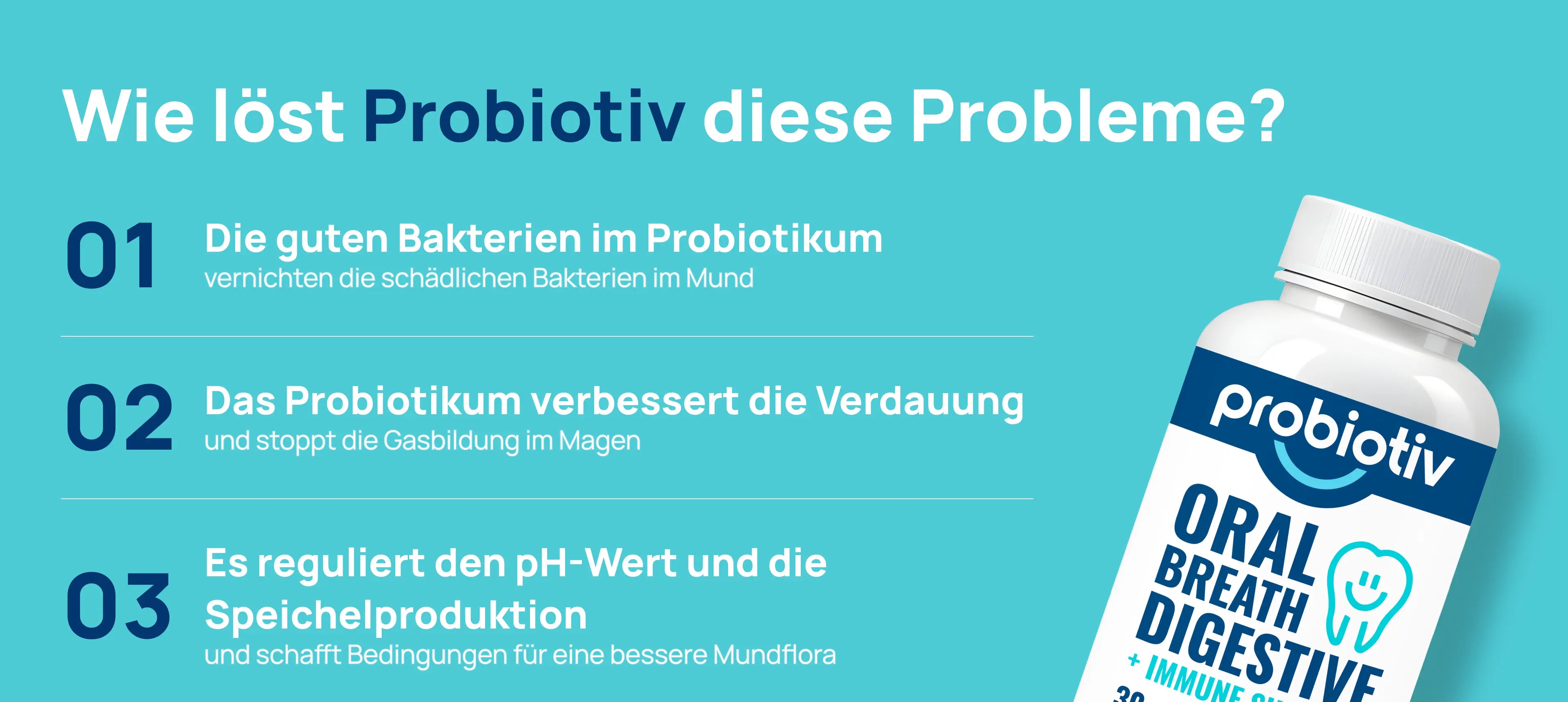 Die guten Bakterien im Probiotikum töten die schlechten Mikroben aus Zigaretten und Nahrungsmitteln ab, die Mundgeruch verursachen.