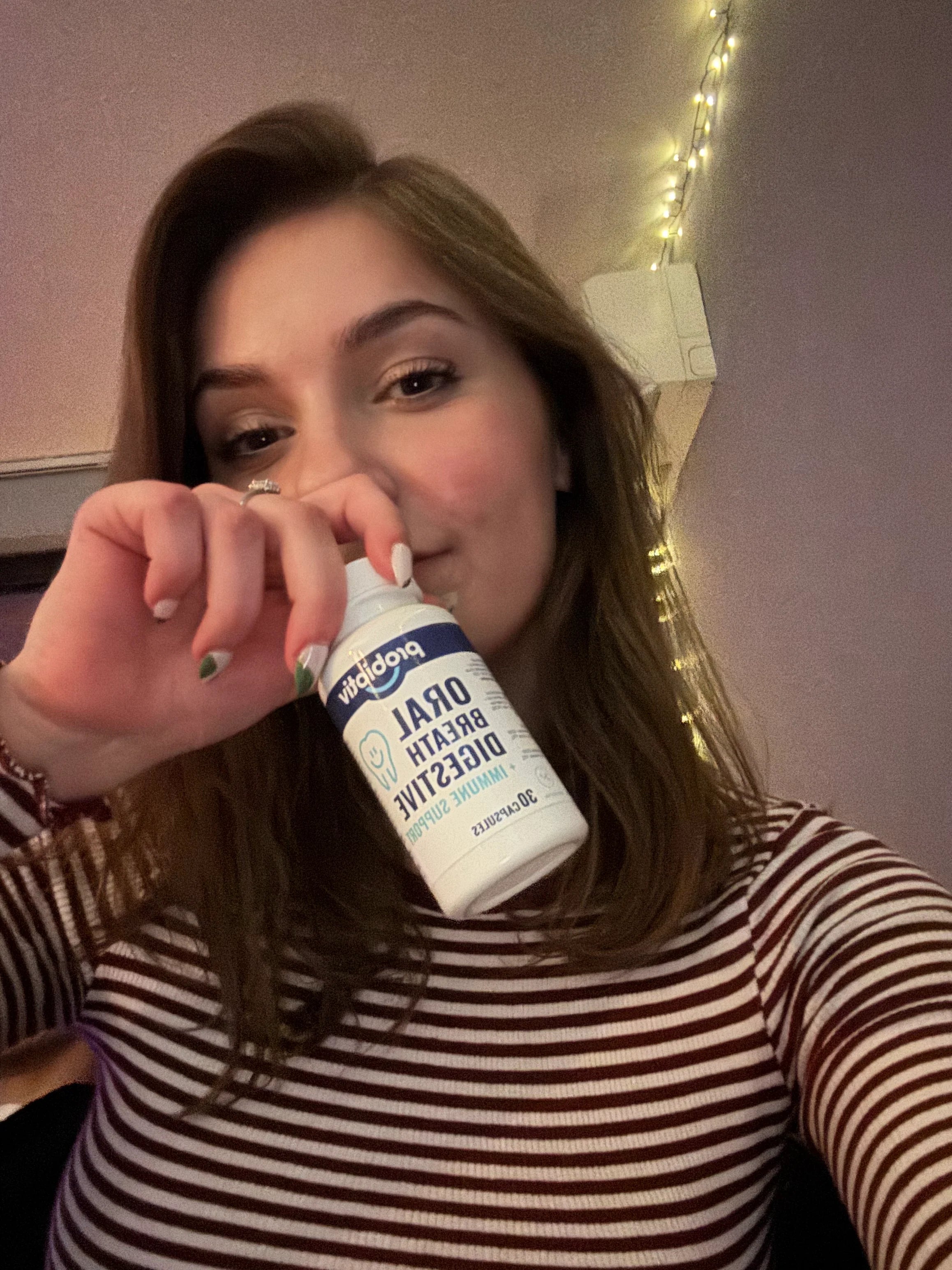 Die guten Bakterien im Probiotikum töten die schlechten Mikroben aus Zigaretten und Nahrungsmitteln ab, die Mundgeruch verursachen.