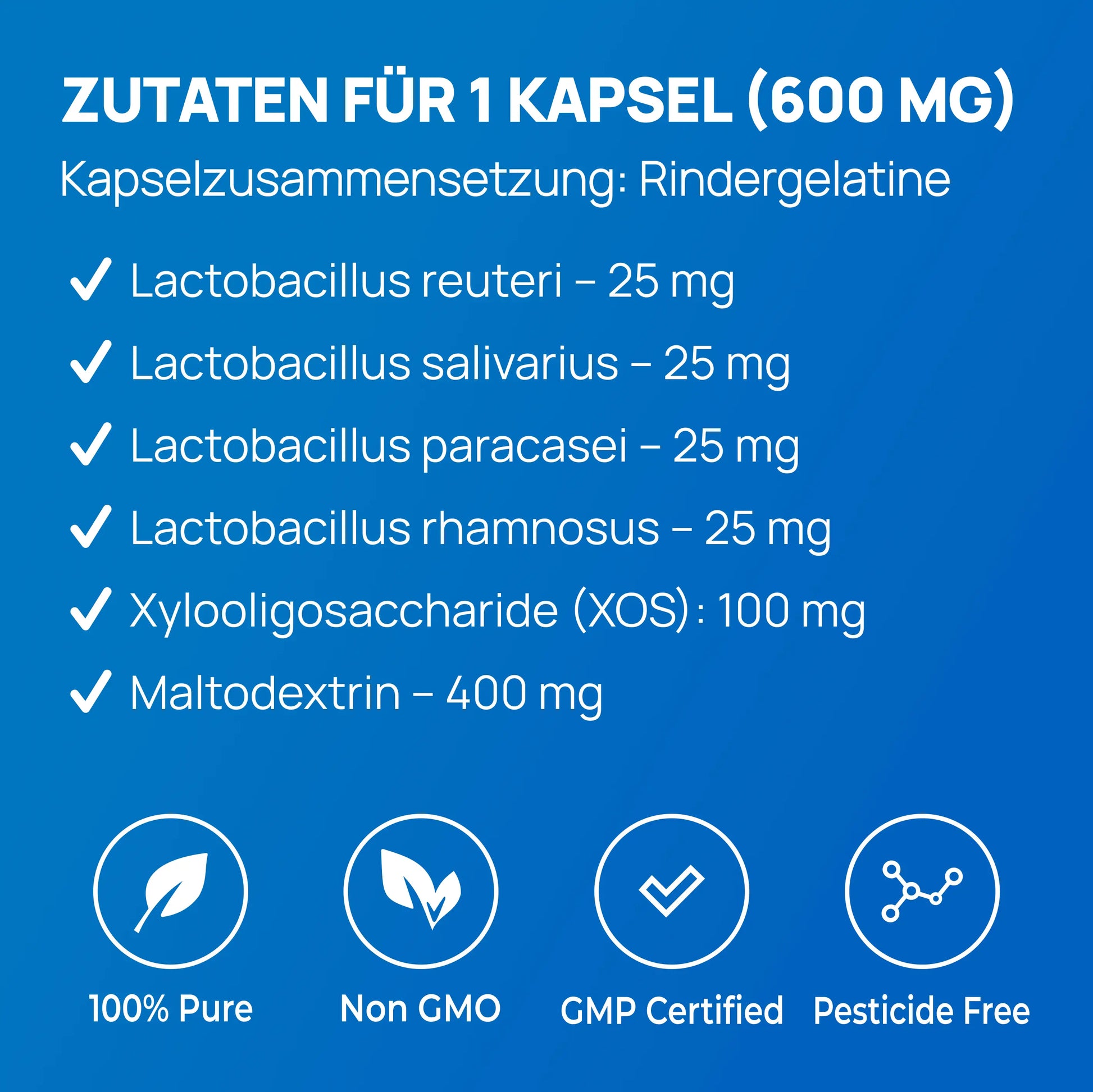 Bekämpft Mundgeruch – Probiotikum mit einer hochwertigen, wirksamen Mischung mit 7 Milliarden KBE zur Bekämpfung von Mundtrockenheit und wirksamen Behandlung von Mundgeruch, wodurch die allgemeine Zahn- und Mundgesundheit deutlich verbessert wird.